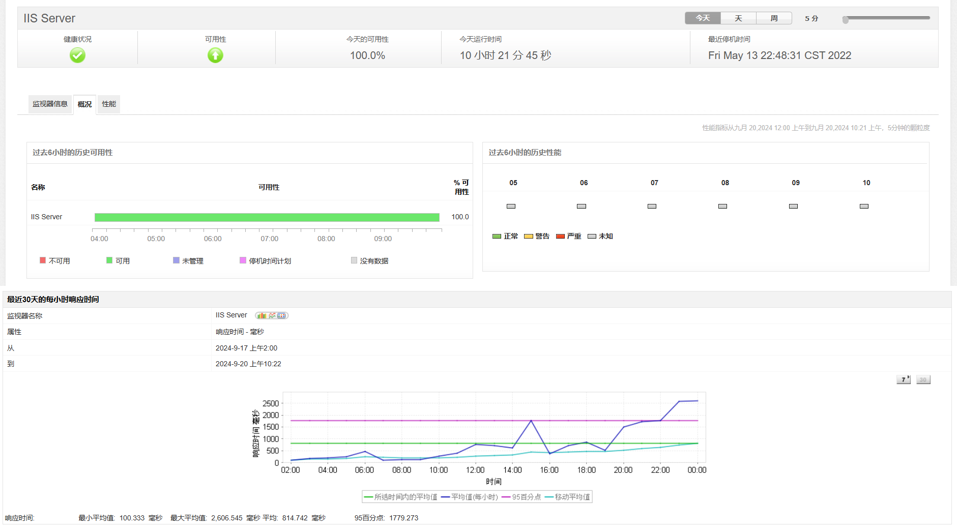 分析各个SharePoint服务器的运行状况和可用性。跟踪重要指标,如站点统计、应用程序错误等。