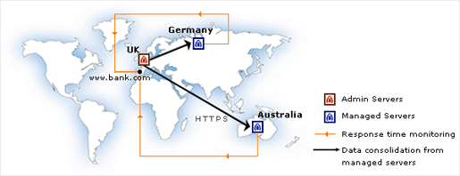 The two data centers have strict firewall rules that do not allow too many ports to be opened. Hence they decided to deploy ManageEngine Applications Manager Enterprise Edition — which supports a distributed architecture. They deployed Applications Manager - Managed Server in each of the locations. They then ran the central server, which is an Applications Manager Admin Server in UK.