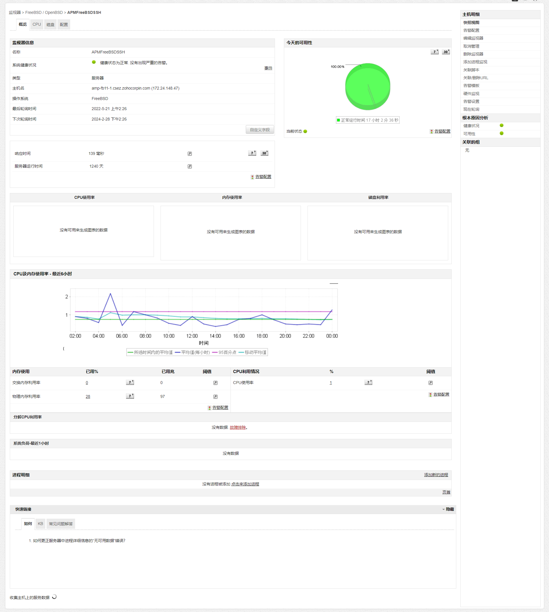 Applications Managerr能监控FreeBSD系统的性能。首先,Applications Manager能发现每台FreeBSD机器,然后监控CPU行为、完整的内存使用率,以及本地和远程系统的统计数据。