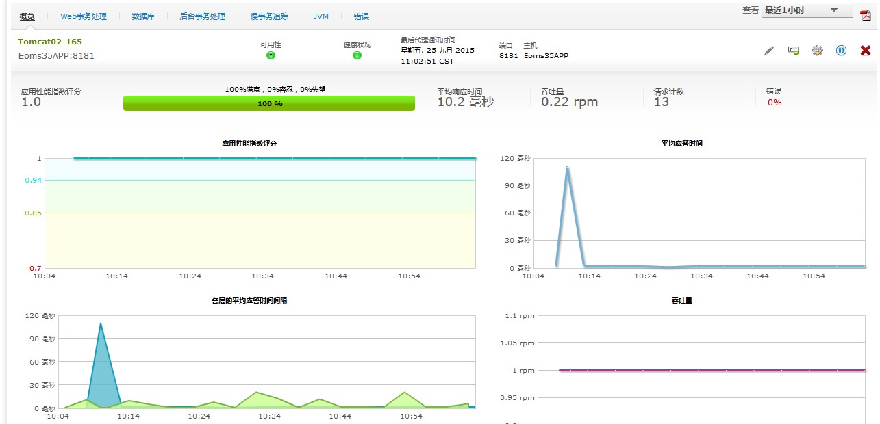 4)针对业务系统的后端性能透视,系统提供了从URL到数据库端到端的性能数据,使用应用性能指数评分来衡量用户满意度。用户的每一个请求的执行过程都实现了跟踪,例如Java/J2EE组件、EJB和SQL语句执行过程。通过方法执行的情况来找到性能瓶颈以及引起性能瓶颈的代码,提交给后台研发人员实现业务的持续优化。