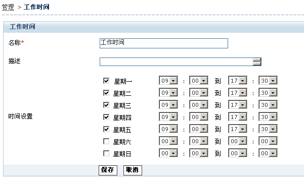 输入工作时间名称(例如:办公时间)以及描述。