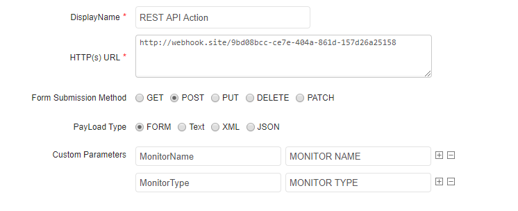 Webhook/REST API动作充当通过配置的URL在任何第三方应用程序上进行交互和执行事件的媒介。由Applications Manager生成的任何告警将触发Webhook/REST API动作以发送所需的事件详细信息,并允许您在任何第三方应用程序中简化和管理重要告警,事件或消息。