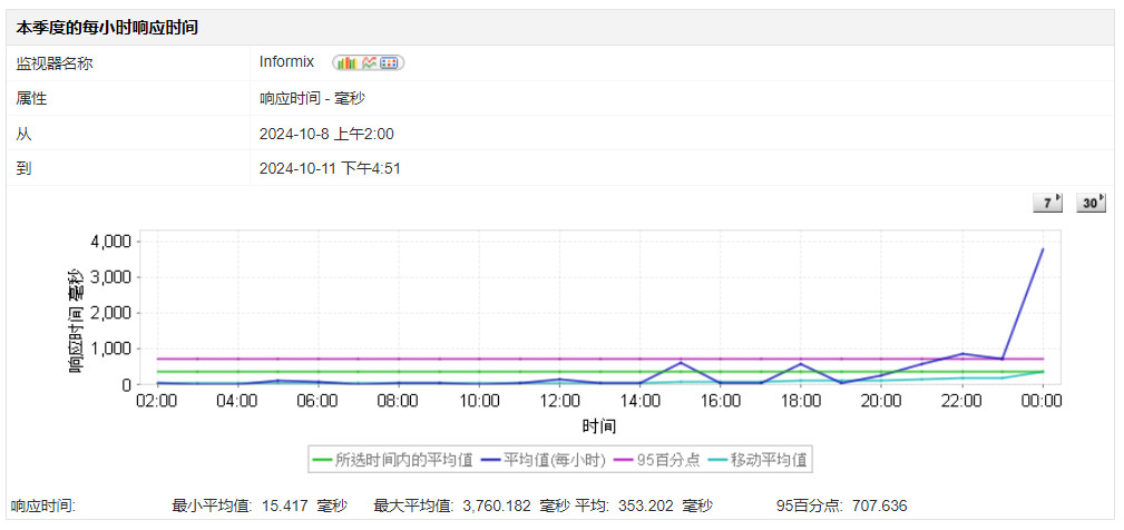通过监测与 Informix 服务器建立连接花费的时间,跟踪数据库性能下降情况。
