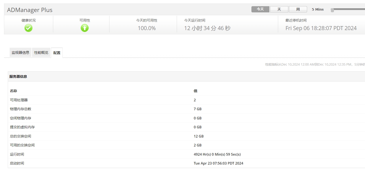 监控 ManageEngine ADManager Plus 的性能。