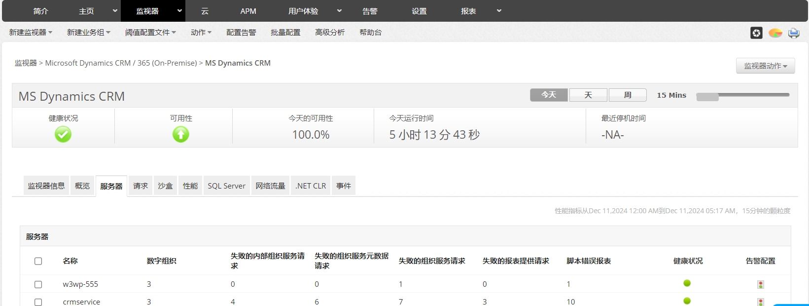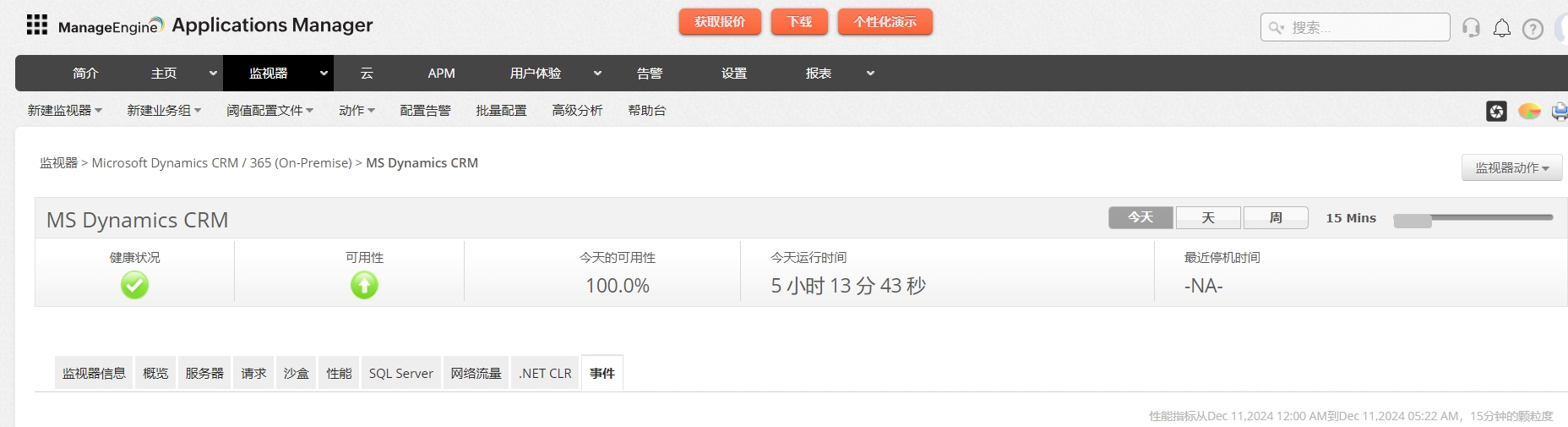 管理各服务器和应用程序的日志,以诊断身份验证、电子邮件连接、电子邮件路由器服务、Web 服务等等的错误。自动检测事件,并监控 Dynamics CRM 环境的可用性和功能,以避免意外停机。