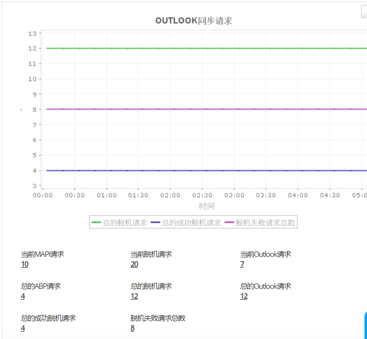 当用户登录 Outlook 连接至 CRM 应用程序时,您可以计算离线同步请求的总数、成功数和失败数,从而确保客户端正确同步。监控 Outlook 同步有助于持续检查异步处理服务的客户端负载。