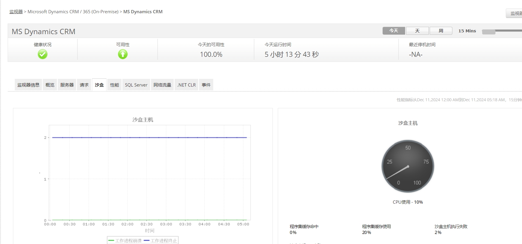 在多租户环境中,防止客户的自定义代码影响另一客户帐户或整个 CRM 平台至关重要。监控活动插件数、失败或终止的沙箱工作进程数、缓存使用率、执行或 SDK 故障数之类的参数,以优化隔离式插件的处理。