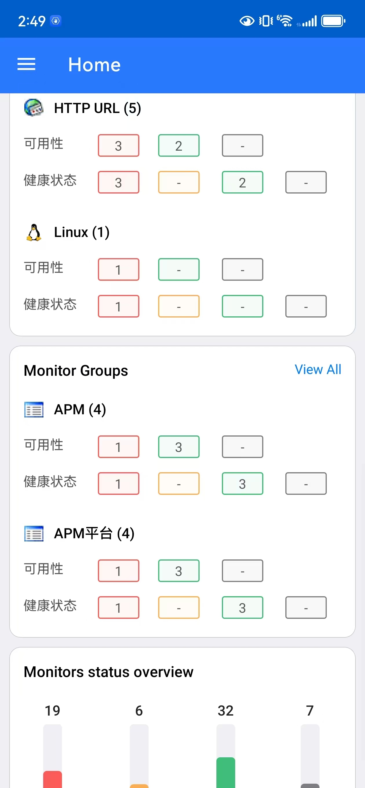 提供简洁明了的视图来展示监视器的可用性和健康状态。方便地查看出现问题的监视器。