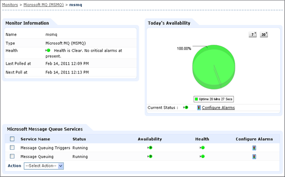 微软消息队列(MSMQ)是一个消息中间件,可以让运作在不同服务器进程间的应用程序相互通讯。提供了企业内部和外部应用程序的通讯。ManageEngine Applications Manager提供了完整地性能监控解决方案,确保MSMQ的正常运行。