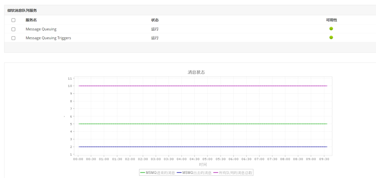 当计算机和其他计算机建立会话时就监控其状态。消息队列状态提供了选择队列的统计信息。监控参数包括:会话、进入/外出方向的会话、队列大小和队列中的消息数等。