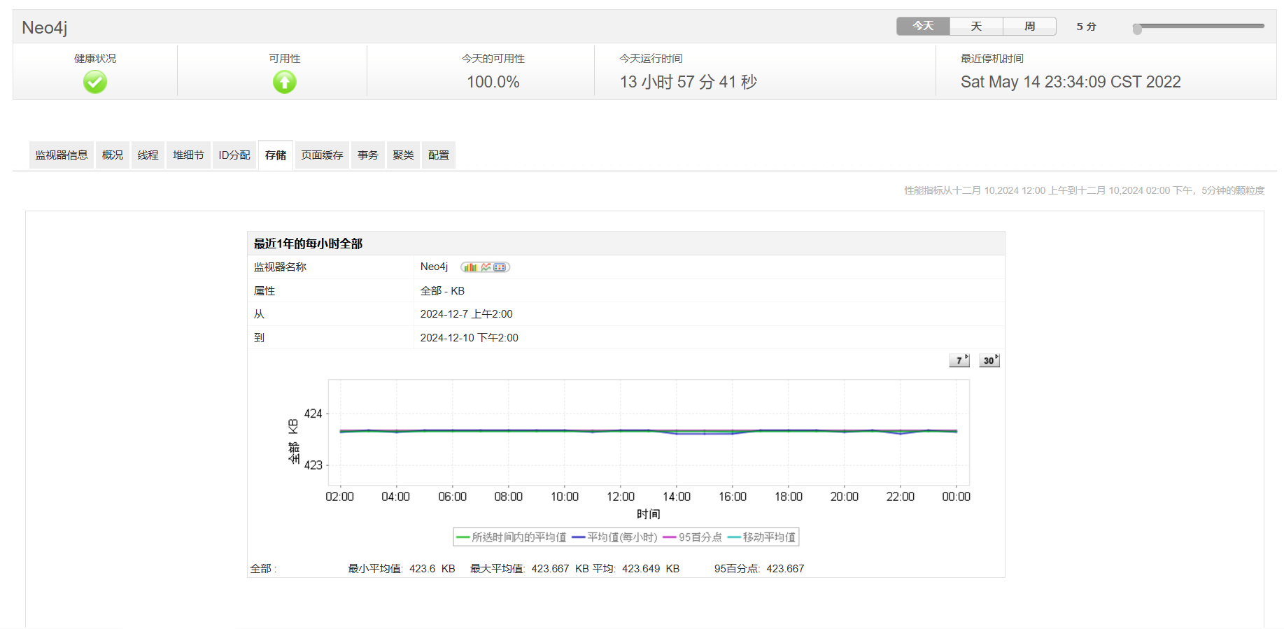 Neo4j将数据库文件保存到存储中,以保持长期的持久性。使用Neo4j监控器,数据库管理员可以获得对存储细节的无与伦比的了解,比如存储大小和属性大小,并对每个存储大小进行细分。这些值有助于预测磁盘大小和增长。