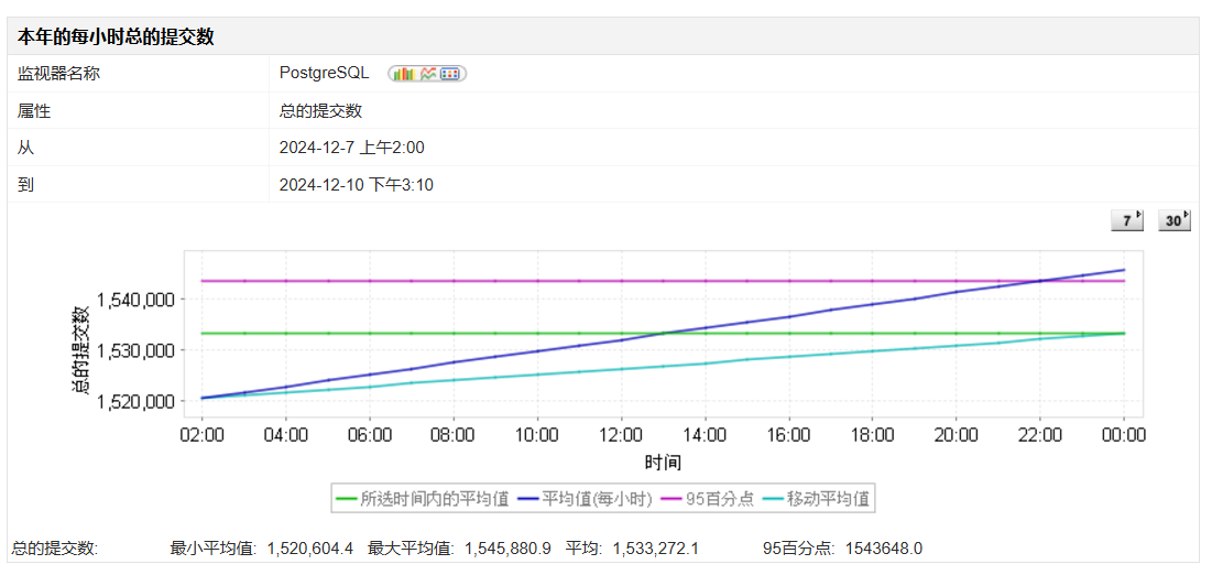交易细节:使用Application Manager的PostgreSQL查询性能监控工具,密切关注数据库中提交和回滚的数量。较高的提交值通常表示服务器效率的提高。