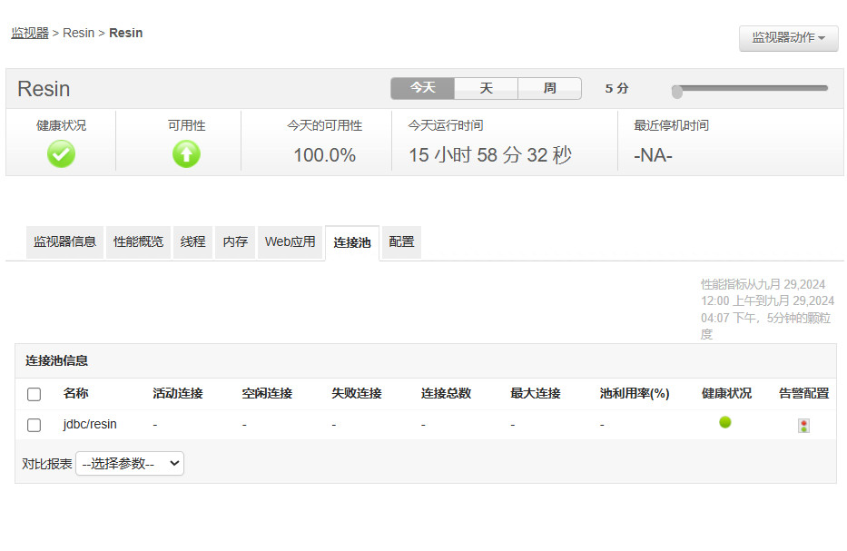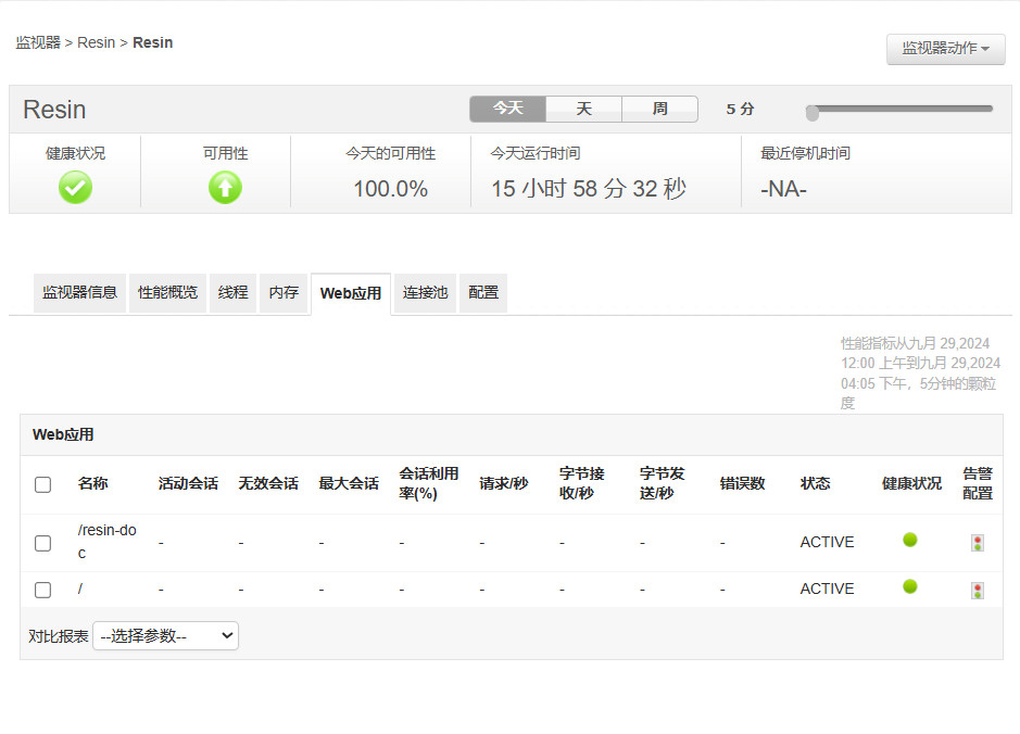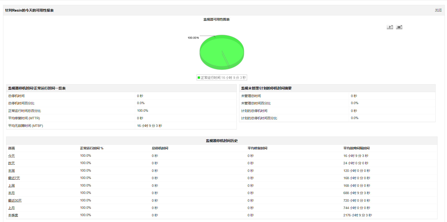 通过内置的报表和仪表板,准确获取 Resin 应用程序服务器的健康状况、可用性和性能概览。