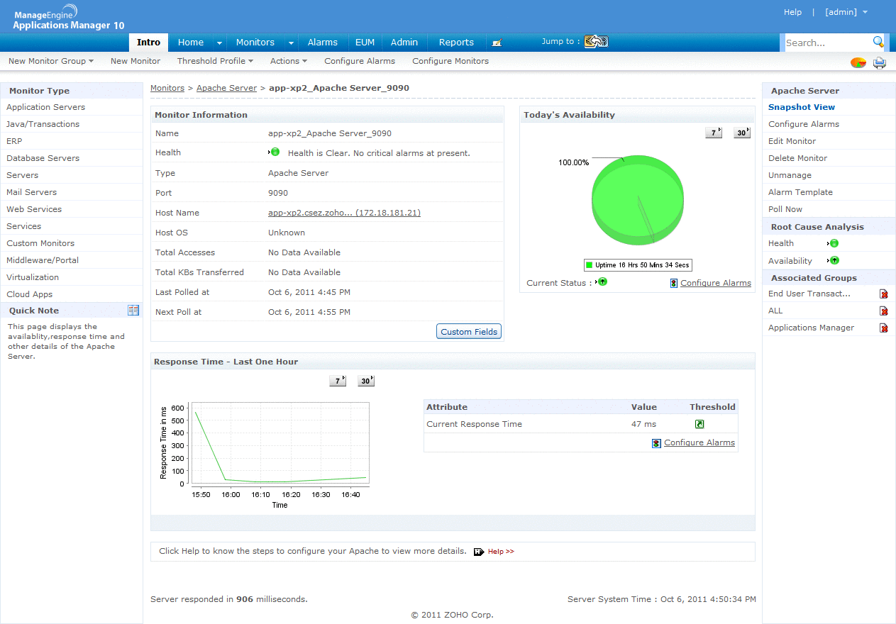 Apache Monitoring | IIS Monitoring | PHP Monitoring | Real Browser Monitor(RBM) | End User Monitoring (EUM) |