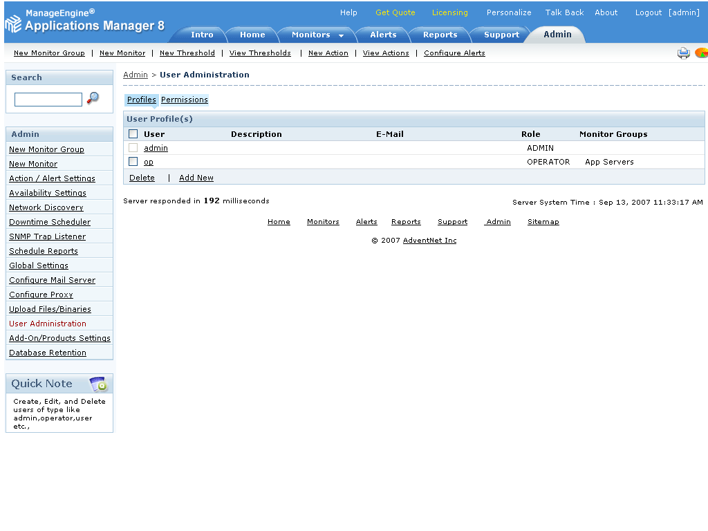 Applications Manager允许下列3种类型的用户访问该产品: