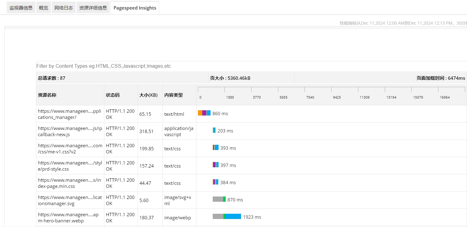 Applications Manager的网页分析器监视服务使您能够使用pagespeed规则和建议执行网页分析、跟踪网页并优化网页性能。