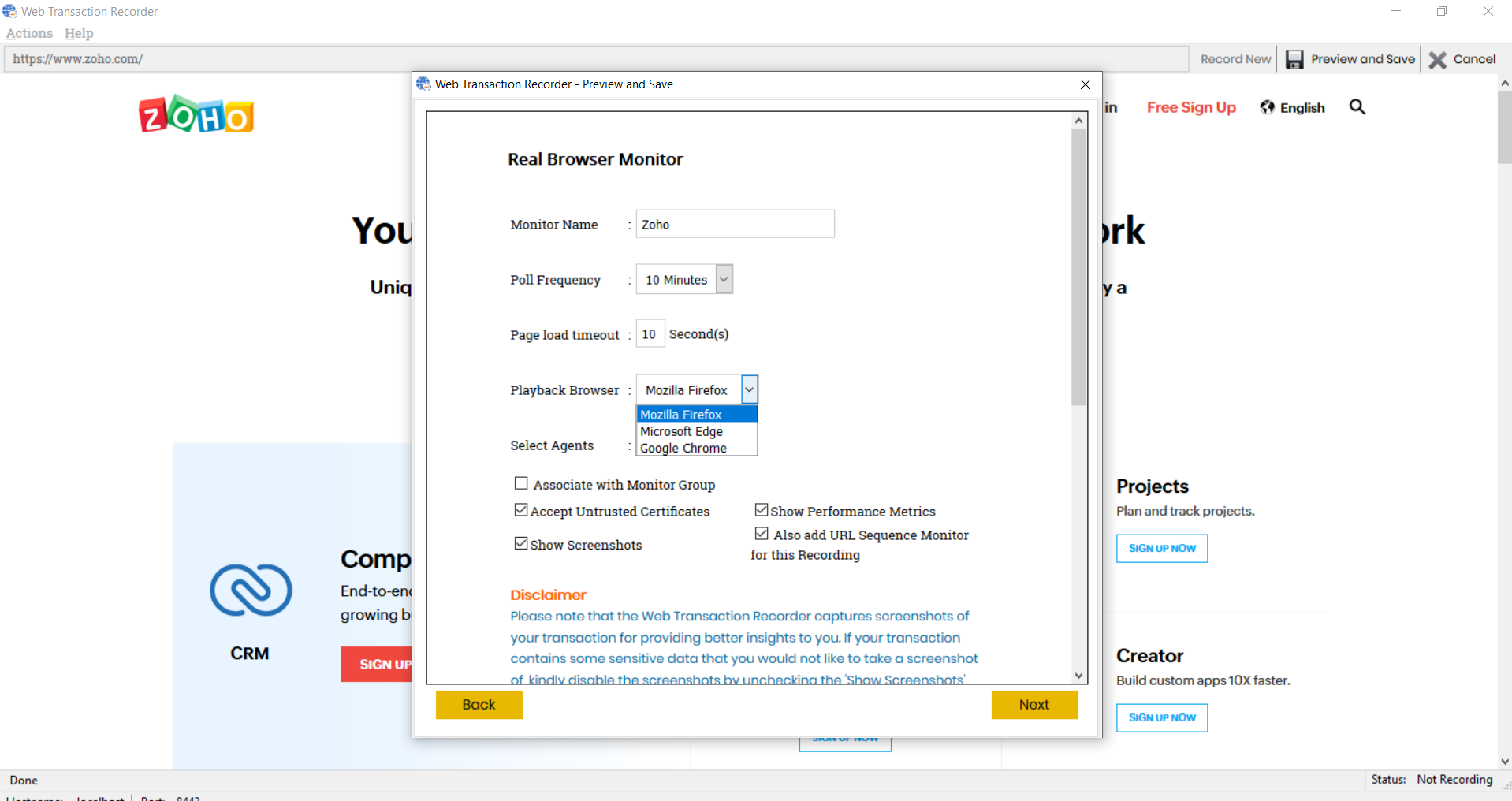 有了我们新的web事务记录器,您现在可以为实时浏览器监控和URL序列监控记录事务。使用单个事务记录器记录web事务和用户事务。