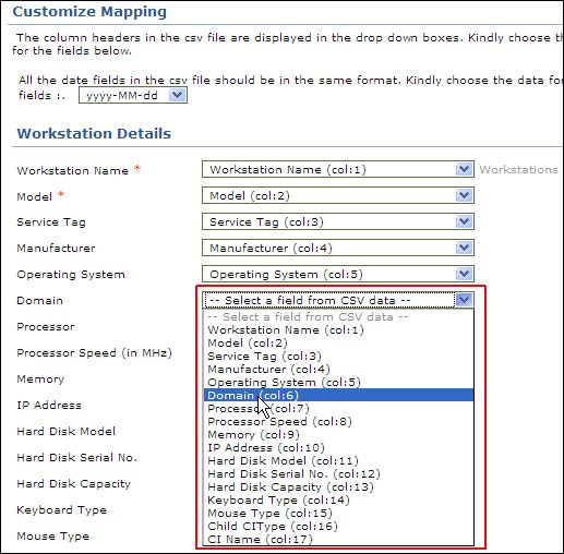 If the CIs are recorded in a .csv file, then the same can be imported in AssetExplorer application using Import CI(s) from CSV. With the easy-to-use CSV import option, you can import the CIs information from your existing database as well as from other applications.