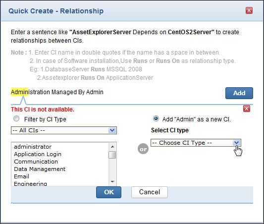 甚至,您都可以为不在CMDB中的配置项创建关系。您可以选择添加相应的配置项到CMDB中,然后再为其创建关系。