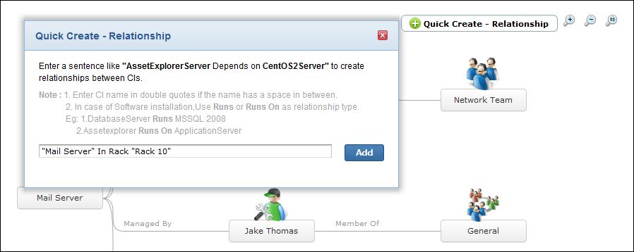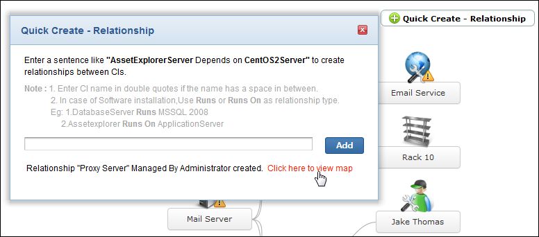 快速创建 - 关系的选项是在不同配置项间创建关系的快速途径。使用它可为关系图中已有的配置项创建关系,也可以在其它配置项之间创建依赖关系。