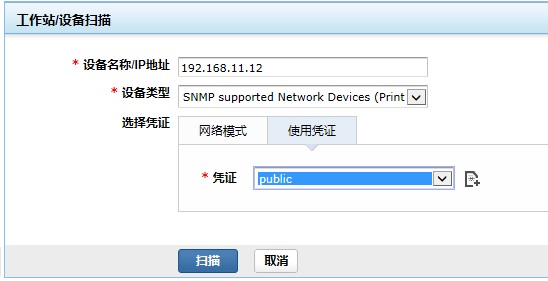 | 设备扫描凭证 | SNMP v1/v2c | 扫描启用SNMP的网络设备 |