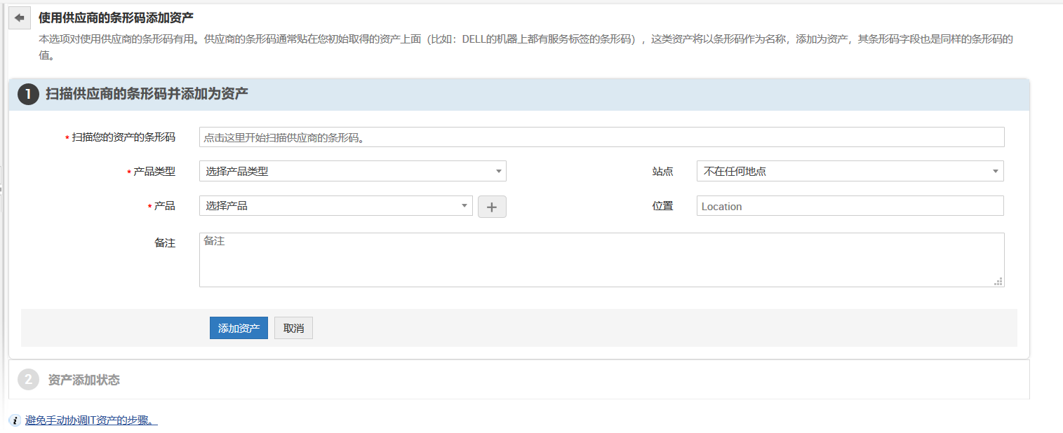 要通过扫描供应商的条形码添加资产,