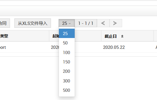设置每页的合同数和导航:您可以设置要在合同列表视图页面中显示的合同数。