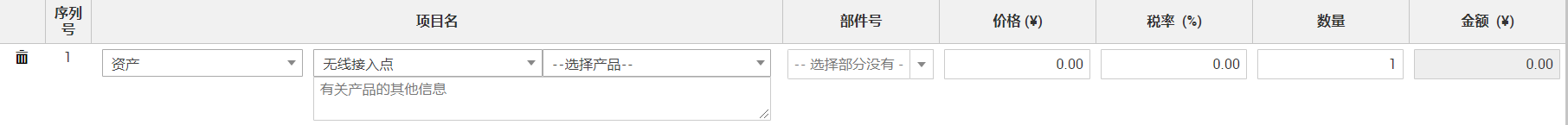 - 选择资产时,将列出与供应商关联的所有产品。