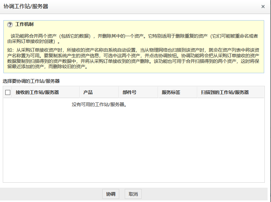单击协调。以购买的工作站中的数据将复制到扫描的工作站中。协调后将删除已购买的工作站。