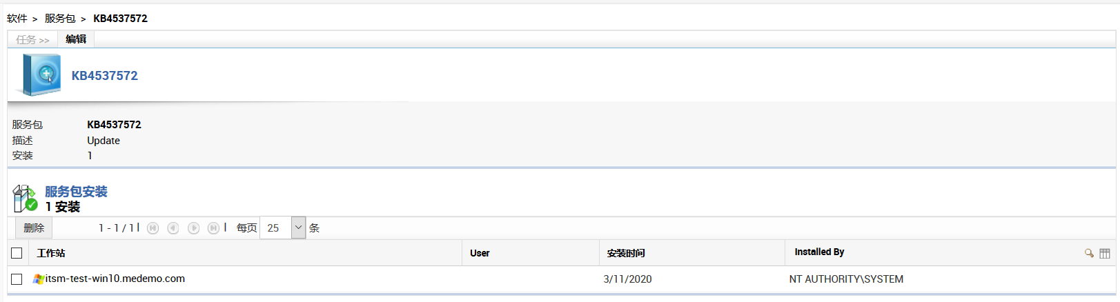 在此,您会获得所有服务包安装的列表,其中包括工作站名称,用户名,安装于和安装人详细信息。