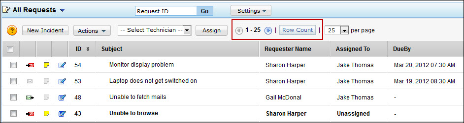 The Request Count displays the total number of requests in the request list view page. Larger the request count value, the longer it takes to display the requests in the list view page.
