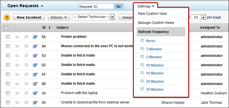 The Refresh Timer refreshes the request list view page at regular intervals. But this can slow down the performance of AssetExplorer.