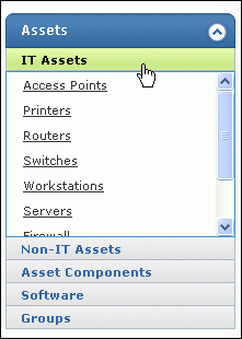 From the Assets block, you can at once navigate to the list view page of assets, components, software and groups.