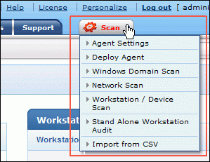 Scan all your Windows Domain, machines such as Linux, MAC, Solaris, AIX machines that are part of your network, and IP based IT assets instantly using the Scan drop down.