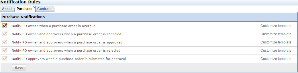 2. Click on Notification rules under the section Purchase and Contract Management to go to Configuration wizard.