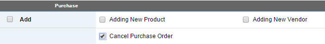 4. Enable the Cancel Purchase Order radio button under the Purchase section.