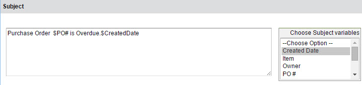 For eg, If you want to add “Created date”, click on “Created date” from Choose subject variables it will get added to your subject.