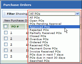 Lists all the POs raised and yet to send it for approval.POs Pending Approval