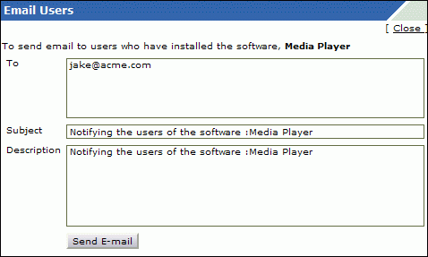 Technicians can communicate to the users who have installed the software instantly by send email from the software details page. With this option, technicians can communicate with the users for any event occurred or to get information from users.