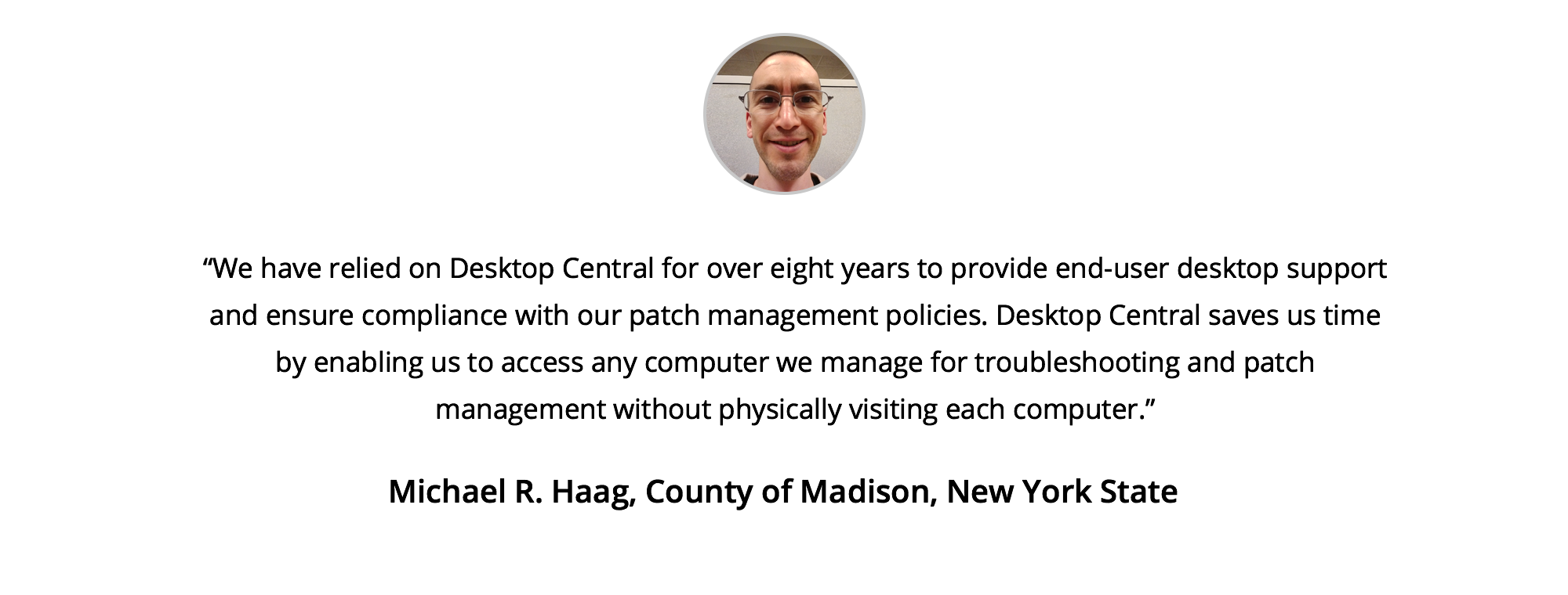 使用Endpoint Central自动化常规终端管理任务,如安装补丁、部署软件、映像和部署操作系统、管理资产、软件许可、监控软件使用情况统计、管理USB设备使用、控制远程桌面,以及更多功能。