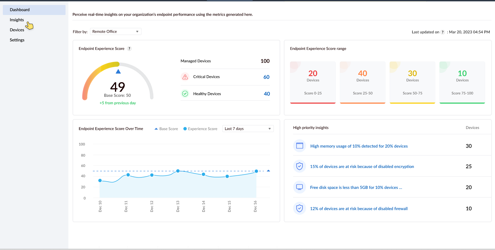 Endpoint Central提供有关您终端性能指标的实时见解。这些见解可用于主动监视和管理您的终端,从而提高终端体验的质量并减少终端的停机时间。