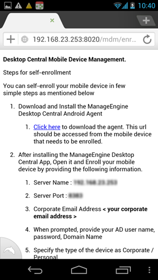 自助登记设备(BYOD)已成为移动管理的一个重要组成部分。现代企业已经将自助服务作为业务战略的一部分,以促进工作和生产效率。它允许公司雇员可以随时随地的访问公司的数据,也就意味着,在增加工作效率的同时也需要承担更多的风险。这是自助服务面临的普遍问题,因此,每个企业都希望找到一个既可以监视设备、分发应用又能够保证公司数据安全的移动设备管理方案。 Desktop Central可以轻松管理雇员的私有设备和公司的设备。您可以为管理的雇员设备创建不同的组,然后在此组上施加策略和限制,保护公司数据。