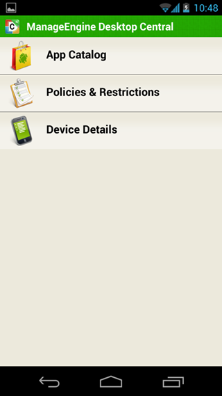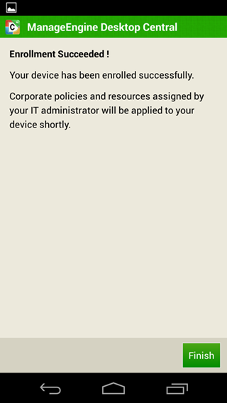 当设备登记完成之后,用户会接收到一个应用目录,他们可以从这里安装从Desktop Central分发的应用。当新的用户登记了设备之后,管理员也会获取到通知。一旦特定的配置文件或应用分发到了添加的设备所在的组,那么设备将会自动接收所有施加给它的配置和应用。