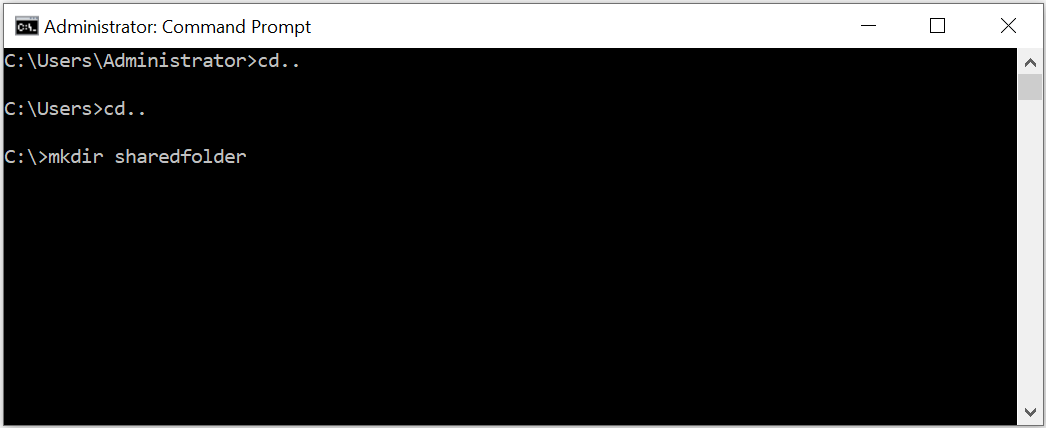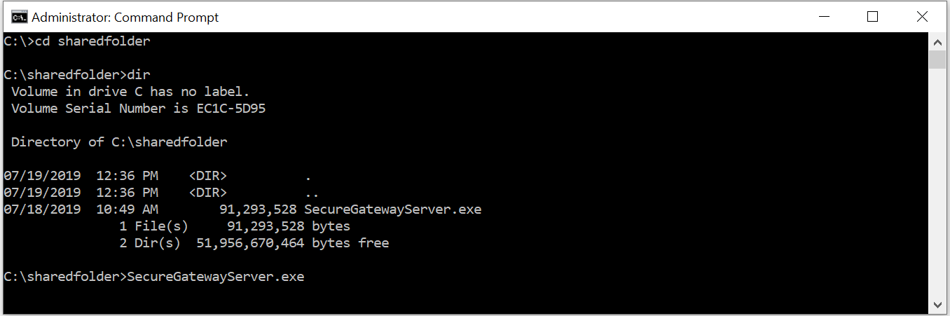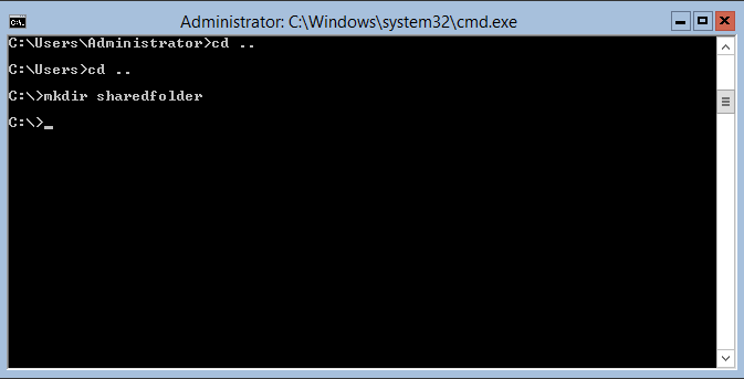 - 在Windows Server Core中,在命令提示符中导航至“sharedFolder”并运行以下命令: