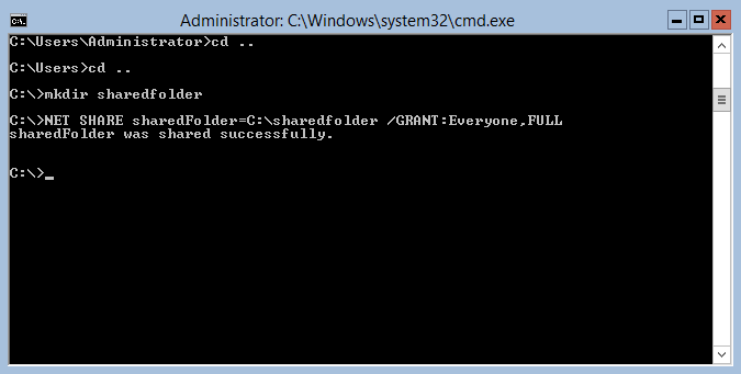 "NET SHARE sharedFolder=C:\sharedFolder /GRANT:Everyone,FULL"