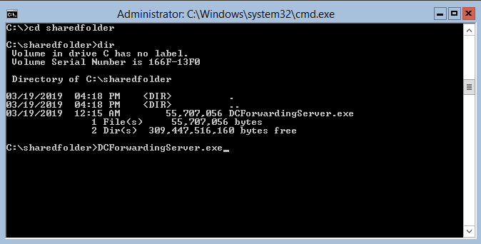 - 将“DCForwardingServer.exe"复制到第2步中创建的文件夹“sharedFolder”。