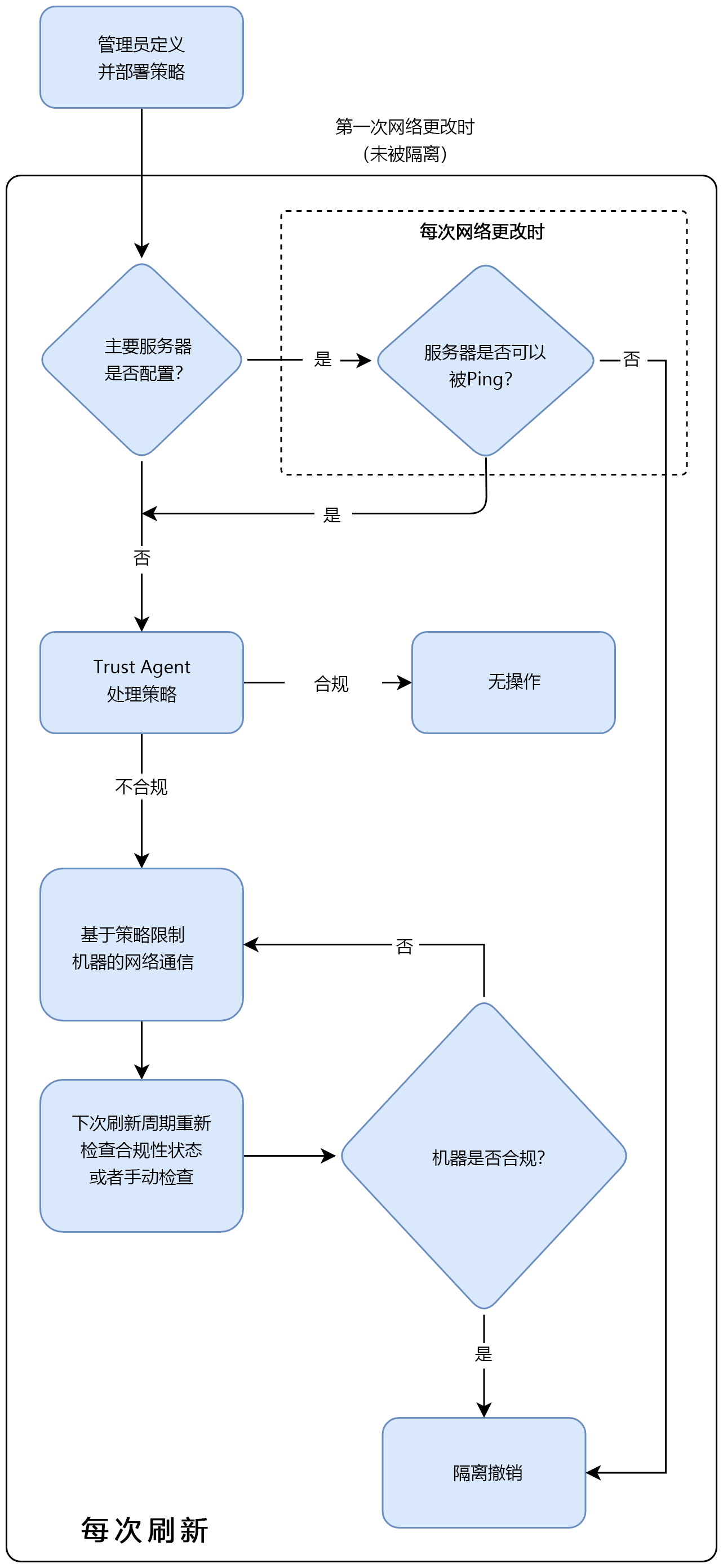 - 不合规(基于quarantine.json)的机器将受到网络通信限制。