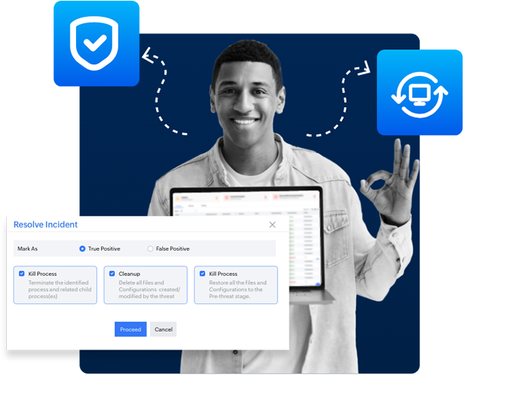 我们的人工智能和机器学习支持的检测恶意软件,擅长检测已知和未知的恶意软件,以及无文件攻击。无论设备的在线或离线状态如何,都可确保持续监控。该组件通过无缝集成静态和动态检测方法的混合模式,触发即时告警,以及时响应和保护。它采用多种检测引擎,通过准确有效地识别威胁来确保无与伦比的安全性。