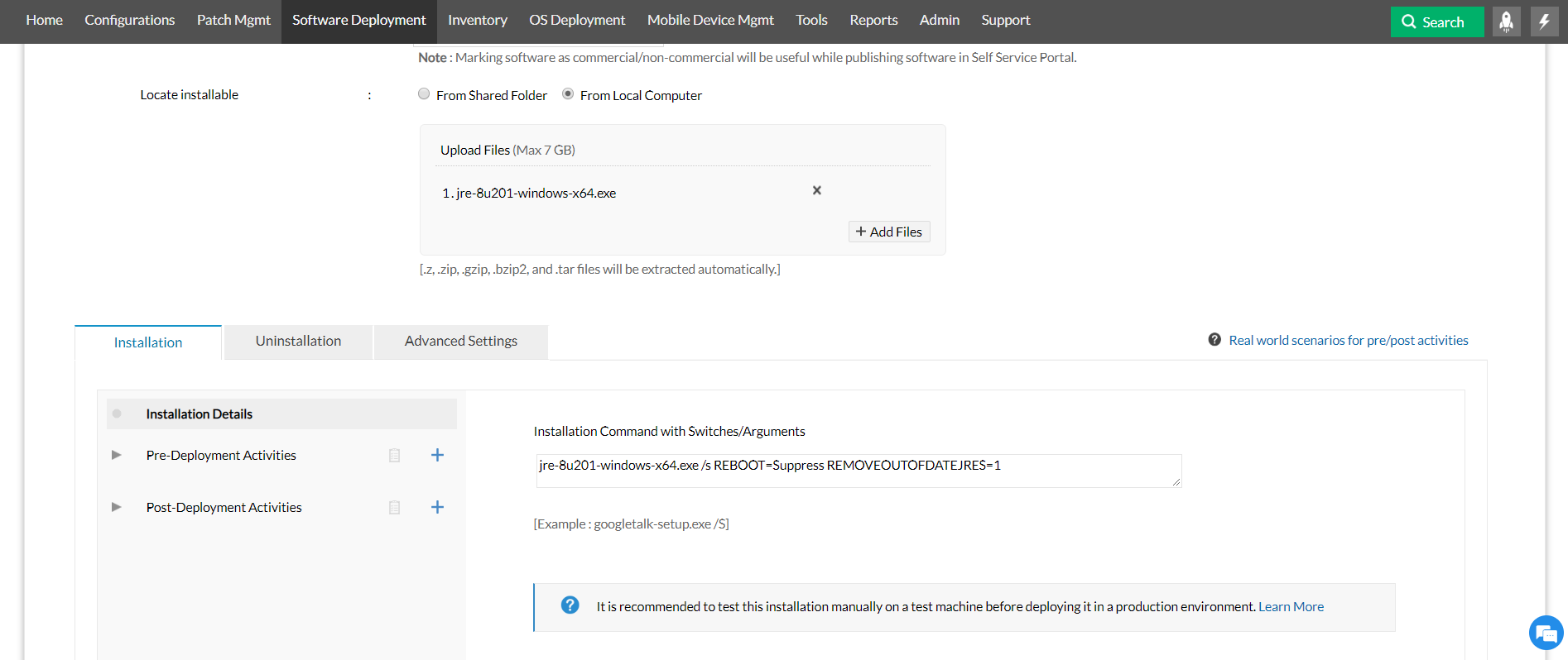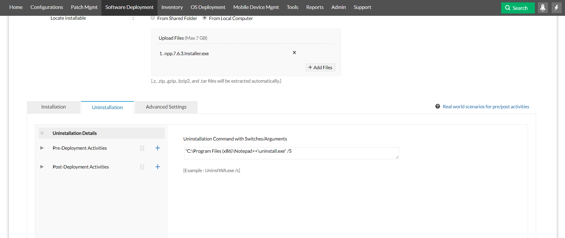 John's boss has asked him to uninstall Notepad++ from all the computers that have it installed. He creates the package for uninstalling Notepad++ using Desktop Central's template. Here is how he modifies the created package to ensure that the uninstallation is carried out efficiently: