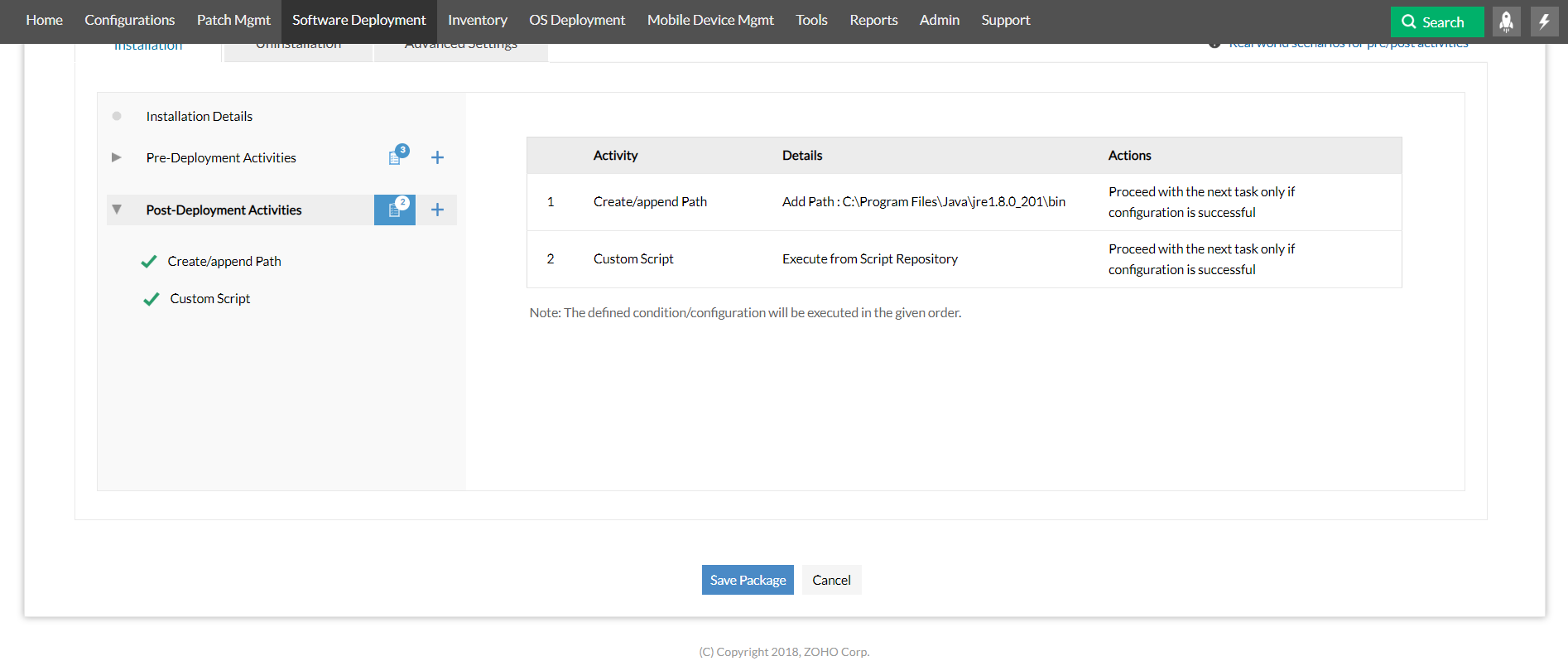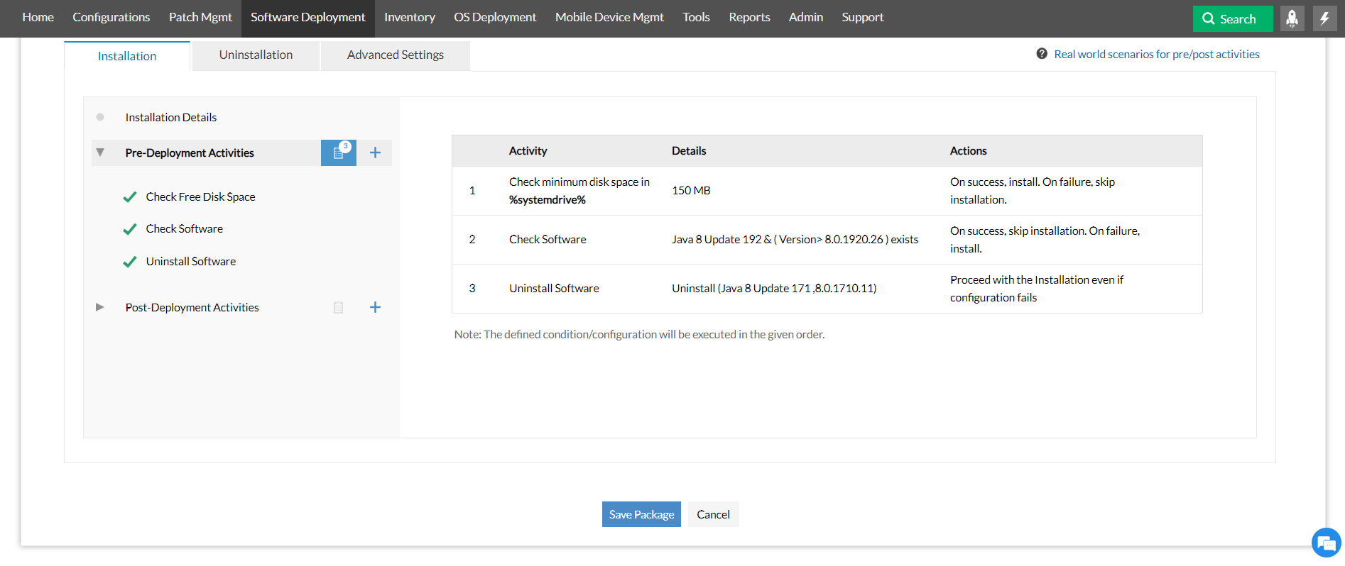 After configuring these activities, he saves the package and deploys it to the desired target. Notepad++ gets uninstalled on all the computers.